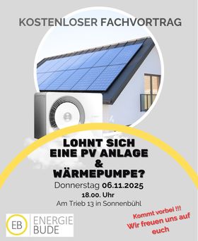 Lohnt sich Photovoltaik? Antworten liefert der ENERGIEBUDE-Fachvortrag am 06.11.2025 um 18 Uhr – fundiert, praxisnah, kostenfrei.